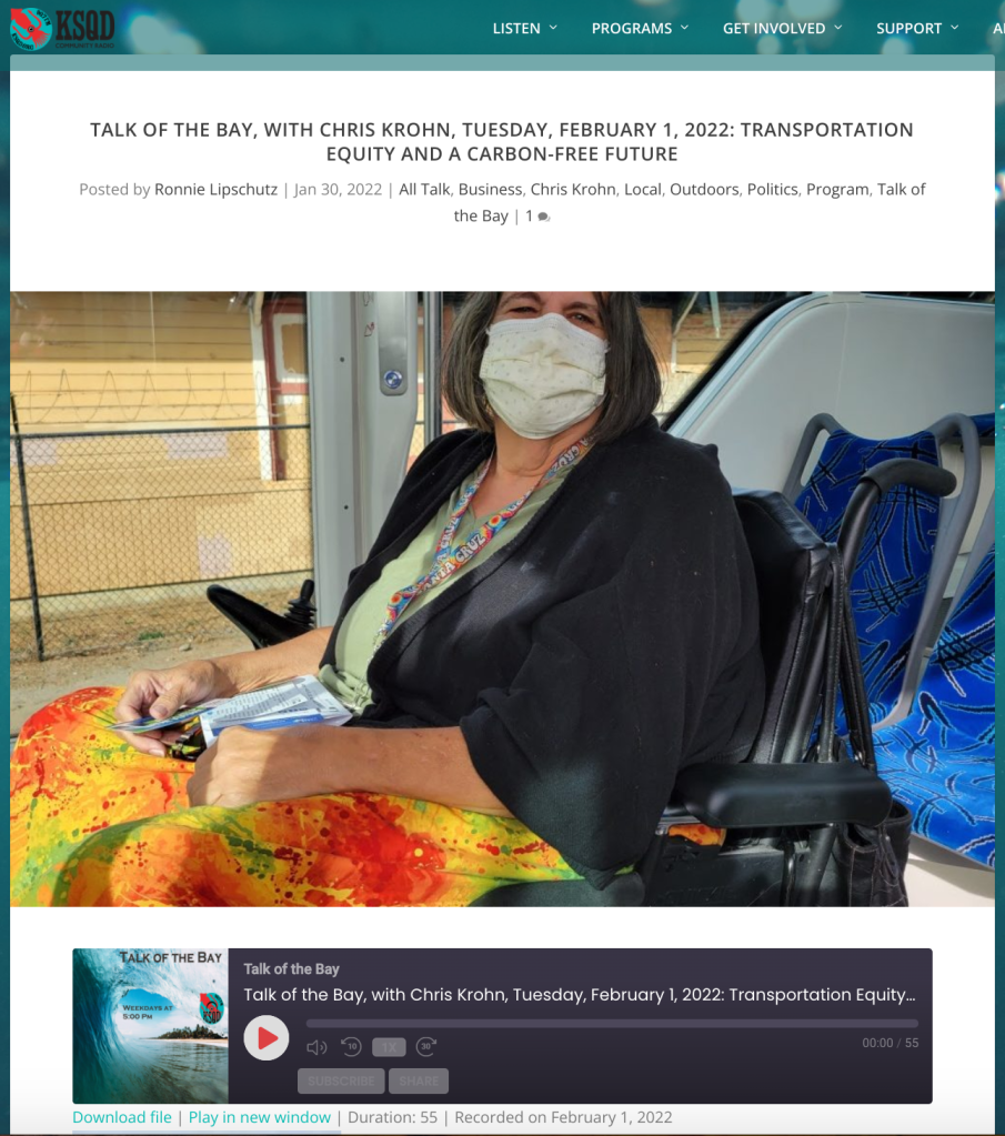 Santa Cruz County’s First National Transit Equity Day Feb 4, 2022, chosen in honor of Rosa Parks’ birthday, was a Success!