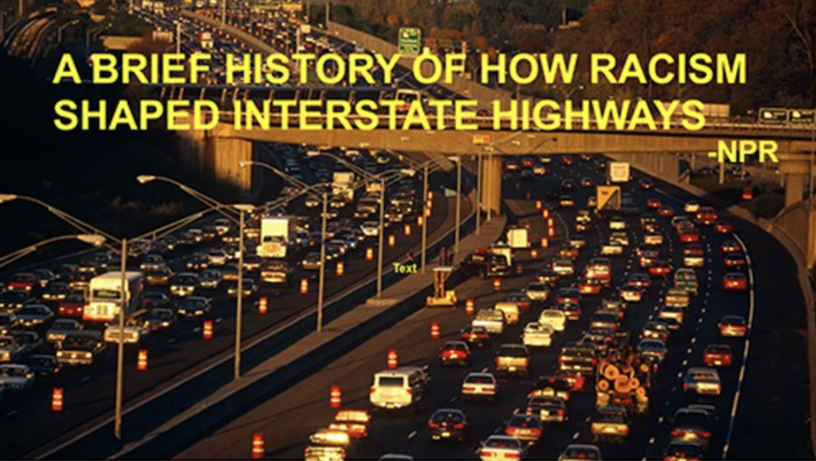 Tracks were torn out, and ever-widening highways were laid down through the bedrooms and backyards of Black and Brown communities suddenly cutting off access to opportunity and systematizing racism and classism across the country while contributing to the the worst pollution near these underrepresented communities.