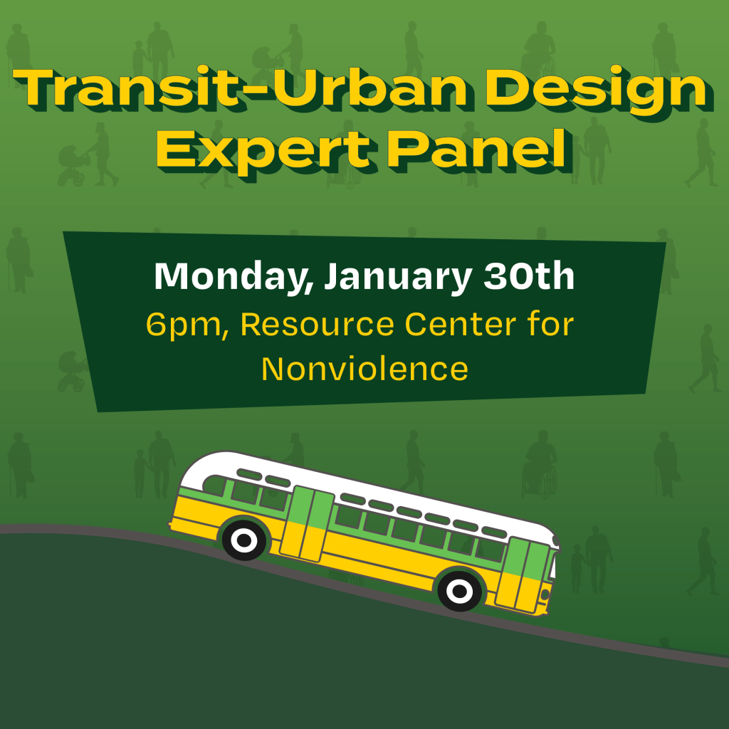 Transit, Urban Design, Safe-Streets Panel Mon Jan 30, 6pm. Resource Center for NonViolence