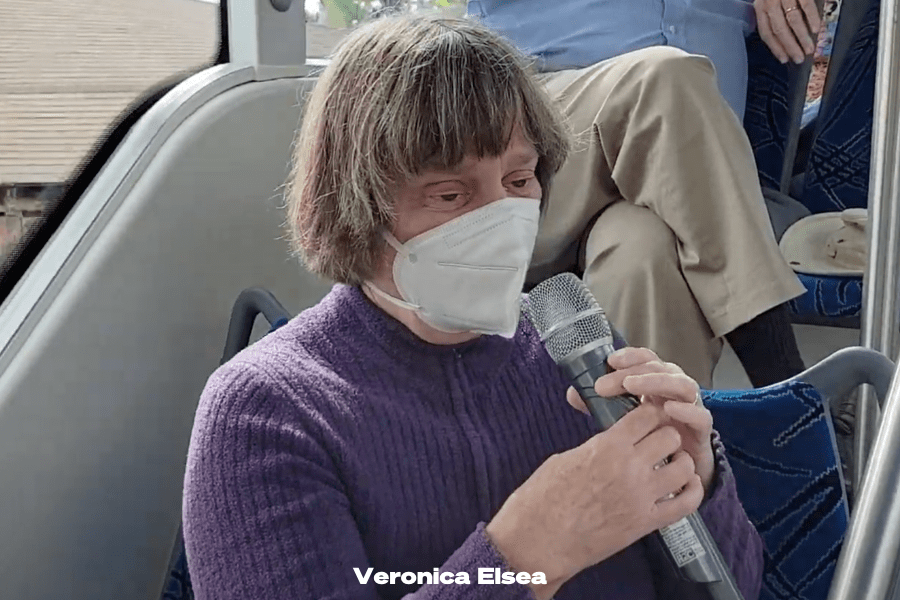 Veronica Elsea is an accomplished professional composer and performer, who is fortunate and daring enough to remain self-employed! She is a member of American Federation of Musicians local 153 and a writer member of American Society of Composers, Authors and Publishers (ASCAP). Veronica received her B.A. from Occidental College in Los Angeles and her M.A. from the University of Iowa both in viola and music composition. Veronica is a very active leader and participant with a number of organizations and governmental agencies, including Chair of the Elderly and Disabled Transportation Advisory Committee, fighting on behalf of the rights of the elderly and people with disabilities. Unbeknownst to many, Veronica is completely blind! Veronica can be seen walking all over town, with her trusty cane. Her upbringing as a young child helped support a life of empowerment and independence and advocacy for others to enjoy the same. For people like Veronica, public transit serves as a lifeline and access to vital services.